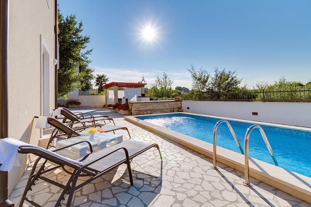 At your disposal are 3 bedrooms, 2 bathrooms, living room and fully equipped kitchen with dining area. Outside area includes completely enclosed garden with swimming pool where you can relax and enjoy the Istrian sun. On the terrace at your disposal is an outside dinning area with charcoal barbecue. Here you can prepare delicious meals or simply enjoy a glas of a good Istrian wine. For more fun there are darts and children’s swings at your disposal. Villa Agneza is air conditioned, has WiFi, private parking for 2 cars and provides everything for a enjoyable holiday.
